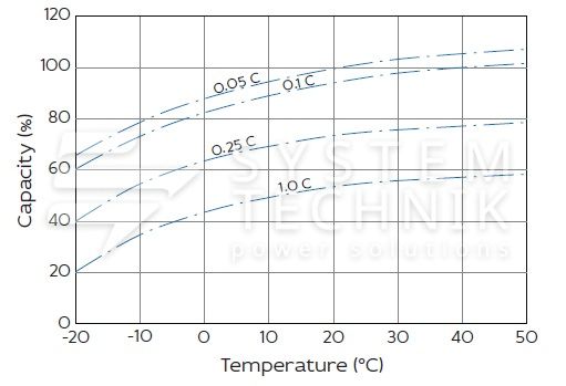 - Срок хранения без подзаряда: 6 мес. при 25°C;
